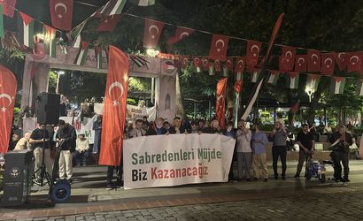 Trabzon'un Ortahisar ilçesinde İsrail'in Gazze'ye yönelik saldırılarına tepki gösterildi. Özgür Aksa Trabzon Platformu öncülüğünde 15 Temmuz Şehitleri ve Hürriyet Parkı'nda bir araya gelen vatandaşlar, "Trabzon, Gazze omuz omuza", "sessiz kalma suça ortak olma", "denizde Sumud Gazze'de umut", "Kudüs bizimdir, bizim kalacak", "nehirden denize özgür Filistin" sloganları attı.