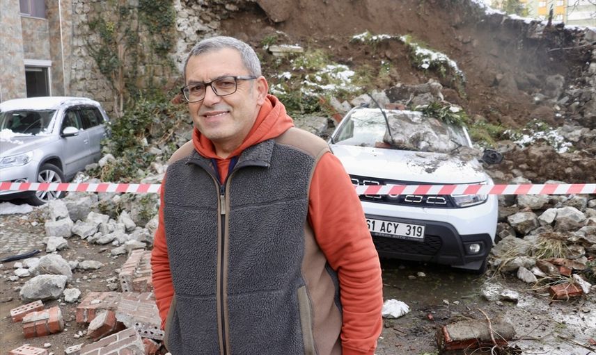 Trabzon'un Ortahisar ilçesinde bir sürücü, sitenin çöken istinat duvarının altında kalmaktan şans eseri saniyelerle kurtuldu. İstinat duvarı, olaydan saniyeler önce buradan ayrılan Karslıoğlu'nun aracının yanına park edilen 2 aracın üzerine düştü.