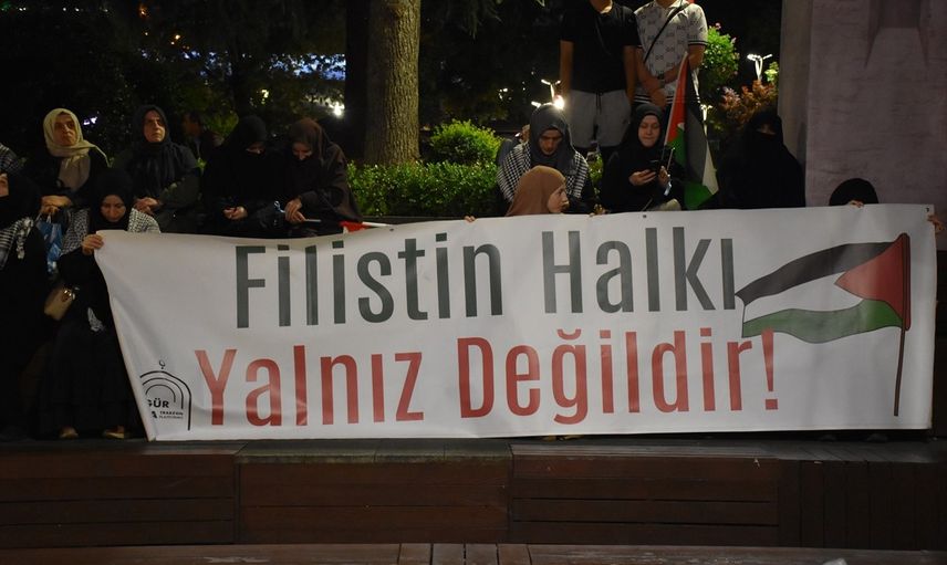 Trabzon’da, abluka kırmak ve insani yardım ulaştırmak amacıyla Gazze’ye doğru yola çıkan Küresel Sumud Filosu’na İsrail tarafından yapılan saldırılar protesto edildi. Özgür Aksa Trabzon Platformunca ellerinde Türk ve Filistin bayraklarıyla 15 Temmuz Şehitleri ve Hürriyet Parkı'nda bir araya gelen vatandaşlar, İsrail'e tepki gösterdi.