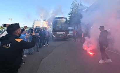 Trabzonspor, Trendyol Süper Lig'in 9. haftasında bugün deplasmanda Çaykur Rizespor ile yapacağı maç için Rize'ye gitti. Mehmet Ali Yılmaz Tesisleri önünde toplanan bordo-mavili takımın taraftarları, meşaleler ve sloganlarla Trabzonspor'a destek verdi.