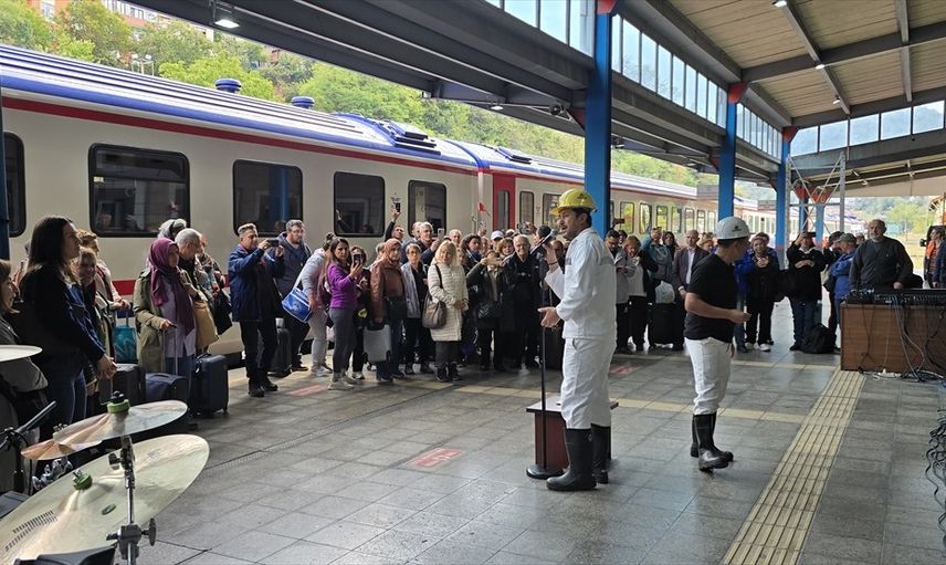 Trenle kente gelen 120 yerli ve yabancı turist, Zonguldak Tren Garı'nda Madenci Korosu tarafından coşkuyla karşılandı. Koronun verdiği kısa konser sırasında, turistler şarkılara eşlik edip dans ederek keyifli anlar yaşadı.