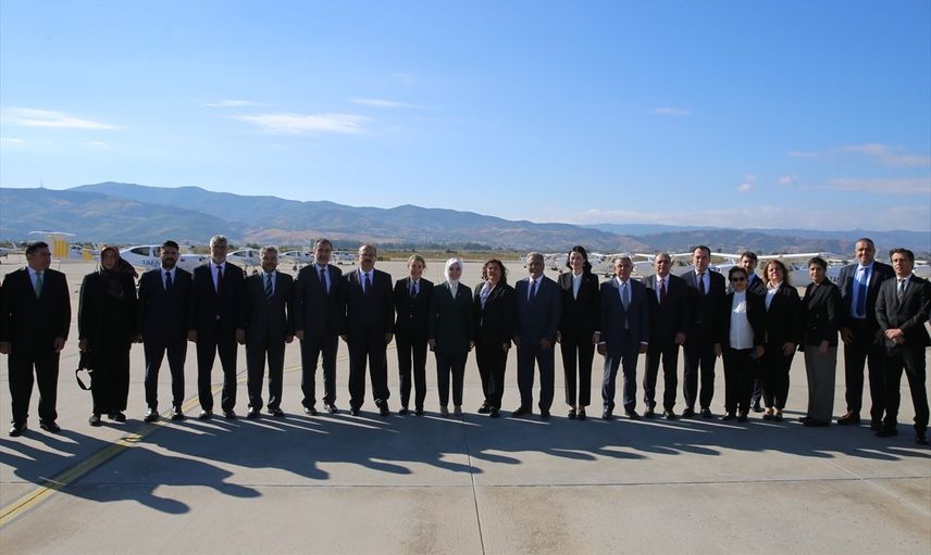 Aile ve Sosyal Hizmetler Bakanı Mahinur Özdemir Göktaş (sağ 3), Aydın Çıldır Havalimanı'nda düzenlenen THY Pilot Mezuniyet Töreni'ne katıldı.