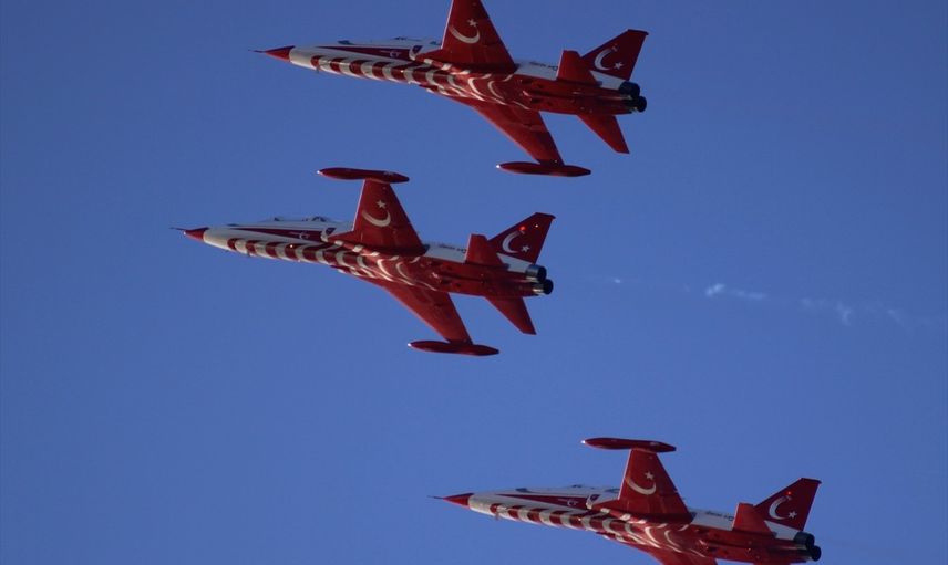 Türk Hava Kuvvetlerinin akrobasi timi Türk Yıldızları, Balıkesir'in Bandırma ilçesinde gösteri uçuşu gerçekleştirdi.
