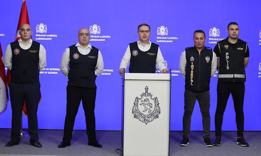 Türkiye ile Gürcistan tarafından gerçekleştirilen ortak yürütülen bir operasyon sonucu hakkında başkent Tiflis'te Gürcistan İçişleri Bakanlığı'nda basın toplantısı düzenlendi. Gürcistan İçişleri Bakanlığı Merkez Kriminal Polis Departmanı Müdür Yardımcısı İrakli Dondoladze, İçişleri Bakanlığı Emniyet Genel Müdürlüğü KOM Başkanlığı ve Interpol-Europol Daire Başkanlığı yetkililerinin de katıldığı basın toplantısında konuştu.