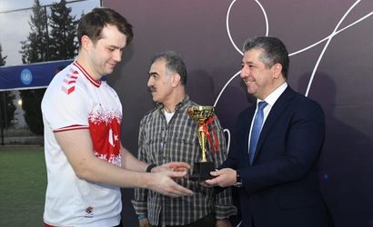 Final maçını kazanarak şampiyonluk kupasını IKBY Başbakanı Mesrur Barzani’nin elinden alan Türkiye’nin Erbil Başkonsolosluğu takımı, turnuva boyunca kendilerine destek olan Türk vatandaşlarıyla bu mutlu anı paylaştı.