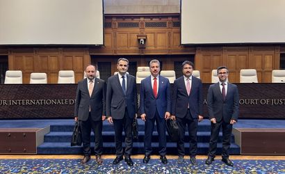 Türkiye, Uluslararası Adalet Divanı'nda (UAD) İsrail aleyhindeki soykırım davasına müdahillik beyanını Divan'a sundu. Türkiye’nin Lahey Büyükelçisi ve TBMM Milletvekillerinden oluşan heyet, Türkiye’nin müdahillik beyanını bugün UAD Yazmanlığına iletti. Büyükelçi Selçuk Ünal (sol 2) ve TBMM Adalet Komisyonu Başkanı ve AK Parti İstanbul Milletvekili Cüneyt Yüksel (ortada), Türkiye-Avrupa Birliği Karma Parlamento Komisyonu Başkanı ve AK Parti İstanbul Milletvekili İsmail Emrah Karayel (solda) ile Anayasa Komisyon Üyesi ve Denizli Milletvekili Cahit Özkan’dan (sağ 2) oluşan heyet, İsrail'e karşı açılan soykırım davasına Türkiye’nin müdahillik bildirimini teslim etti. Türkiye böylece Nikaragua, Kolombiya, Libya, Meksika, Filistin ve İspanya’nın ardından UAD'deki Güney Afrika-İsrail arasındaki soykırım davasına müdahillik bildiriminde bulunan yedinci ülke oldu.