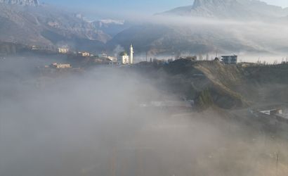 Şırnak'ın Uludere ilçesinde gökyüzünü kaplayan sis tabakası dronla kaydedildi. İlçede etkili olan ve görüş mesafesini düşüren sis havadan güzel görüntüler oluşturdu.