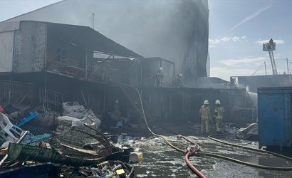 Ümraniye'de, Dudullu Organize Sanayi Bölgesi'ndeki hurdalık alanda çıkan yangın, bölgeyi saran yoğun dumanla dikkat çekti.