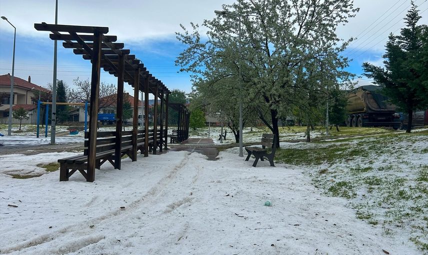 Uşak'ın Sivaslı ilçesinde sağanak ve dolu hayatı olumsuz etkiledi. Sağanağın ardından etkili olan doluyla birlikte tarlalar ve sokaklar beyaza büründü.