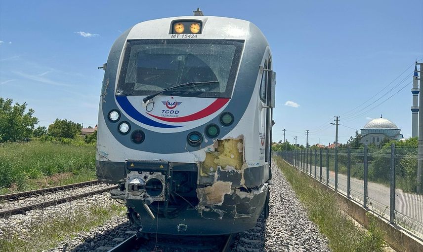 Uşak'ta hemzemin geçitte trenin çarptığı traktörün sürücüsü hastaneye kaldırıldı.