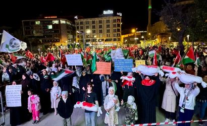 İpekyolu ilçesindeki Kent Park'ta bir araya gelen katılımcılar, Türk ve Filistin bayraklarıyla Kent Meydanı'na kadar yürüyüş gerçekleştirdi.