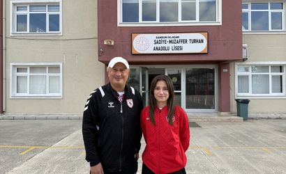 Fransa'da düzenlenen Bocce Petank Dünya Kupası'nda bronz madalya kazanan Yağmur Tosun (solda), Samsun'daki okulunda çiçeklerle karşılandı.