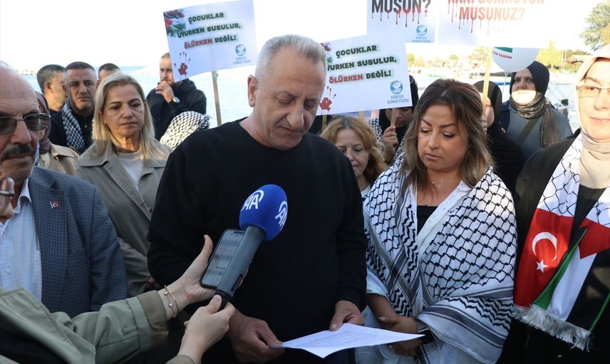 Yalova'da Türk ve Filistin bayraklarıyla denize açılan tekneler Gazze'ye insani yardım ulaştırmak amacıyla yola çıkan ve İsrail'in saldırısına uğrayan Küresel Sumud Filosu'na destek verdi.