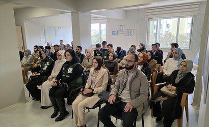 Yeşilay Genel Başkanı Mehmet Dinç (ortada), Bingöl'de Yeşilay Danışmanlık Merkezi'nde düzenlenen "Medeniyet Söyleşileri" programında öğrencilerle bir araya geldi.