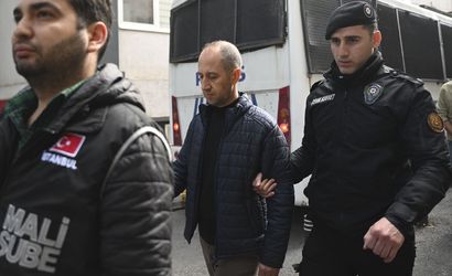 İstanbul Büyükşehir Belediyesine (İBB) yönelik yolsuzluk soruşturması kapsamında 3 ilde düzenlenen operasyonda gözaltına alınan aralarında İSKİ Genel Müdürü Şafak Başa'nın (solda) da olduğu 52 şüpheli emniyetteki işlemlerinin ardından Çağlayan'daki İstanbul Adliyesi'ne sevk edildi.