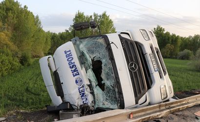 Yozgat'ta soya yağı yüklü tırın devrilmesi sonucu sürücü yaralandı.